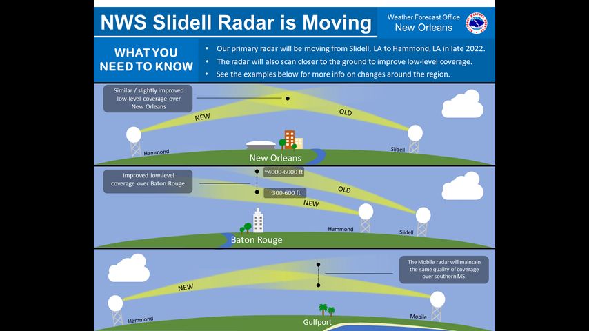 This will result in better coverage and storm detection for thousands of residents across the region. Simulated radar displayed over. National Oceanic and Atmospheric Administration National Weather Service New OrleansBaton Rouge 62300 Airport Rd.